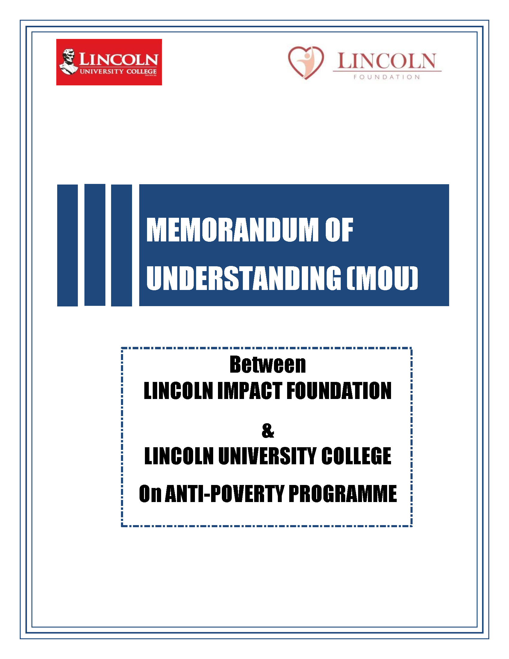 Memorandum of Understanding (MOU) Between Lincoln University College, and My Country/ Myhope Foundation, Nigeria on community Anti-Poverty Programmes. Read More